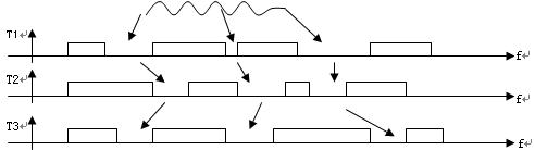 图2描述了在四载频情形下,频谱共享策略在T1,T2,T3(T1