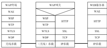 WAP1.x网关协议栈采用分层设计的结构,如下图所示: