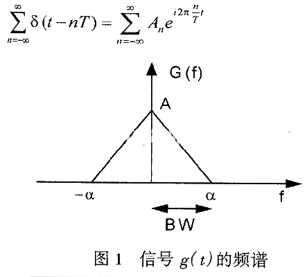 越来越多的应用要求采样模拟信号,将其转换为数字信号,对数字信号做各种计算和处理,然后再将它们转换成模拟信号。本文讨论了如何采样模拟信号并对其整形以保持原始信号的方法。 2 基带信号的采样和混叠分析 先从有限带宽信号着手讨论,有限带宽信号是指某个频率点(截止频点)之外的所有频率的频谱成分的幅度都为0的信号。如图1中的g(t),大于截止频点α的频率范围内的频谱分量全部为0。在这种情况下,α也就是这个基带信号的带宽。对g(t)的采样在数学上可以用以下方式表达:将g(t)乘以周期为T的冲激函数。g(t)在冲激点的信号值被采样,而其它点的值都为0。从模拟信号角度来看,就是按频率fSAMPLING=1/T对g(t)取样。采样后的信号s(t)可用以下公式表示: