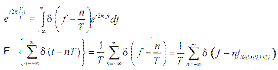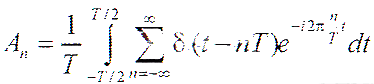 上式中积分的上下限只由一个周期来决定。在保证等效的前提下,可以进行以下变换:用从负无穷到正无穷的傅立叶积分代替上式中的积分,周期性的冲激函数用基频冲激函数代替,则上式可改写为:
