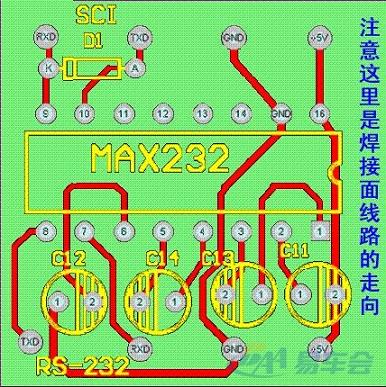 注意这个图是PCB图,就是电路板焊接的这一面,并且注意对照好上面的引脚,别弄错了.