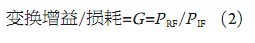 变换增益(或损耗)用对数表示,单位为dB,如式2所示,是频率的函数,定义在混频器的整个工作频率范围内。为了保证最佳接收性能,变换增益/损耗的变化应该在规定频率范围内尽可能小。
