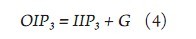 当两个频率几乎相同的大信号作用到混频器的输入时,混频器应该也能够转换微弱信号。该性能通常用3阶交调截点(IP3)表示,该参数与噪声系数一起表示混频器的动态范围。IP3较大说明混频器的线性度较高。混频器数据手册还应提供混频器的输入、输出交调截点,利用式(4),可以根据IIP3(输入交调截点)计算OIP3(输出交调截点),反之亦然: