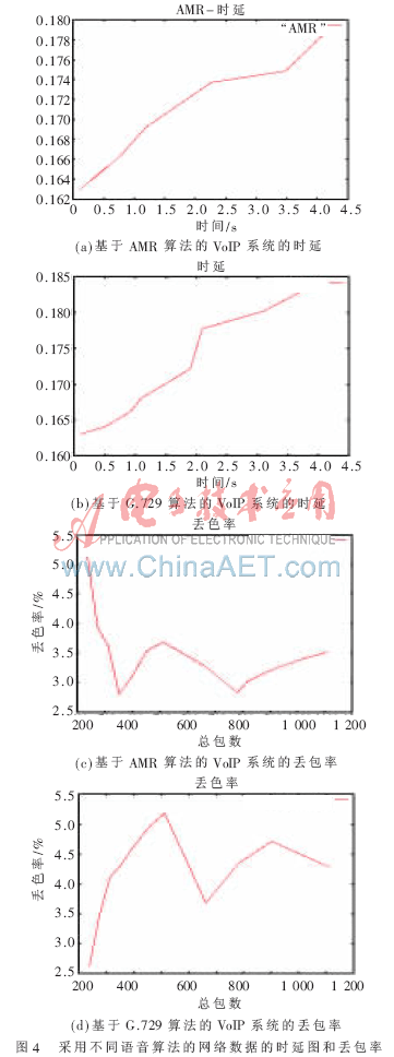 图4为采用不同语音算法的网络数据的时延图和丢包率图。