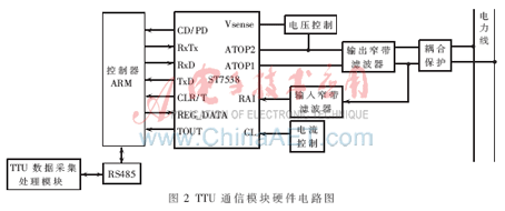 微处理器选择ARM芯片,它与TTU的数据采集与处理模块通过串口进行通信,及时发送主站的命令以及传送TTU采集到的配变数据。