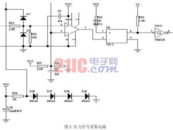压,该门电压大约为2V;四个二极管D26、D27、D28、D29 是为设置输入脉冲值的上限,该