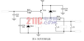 倒井控制电路(如图5 所示)主要由二极管、三极管、电容、常开开关等组成。它可以