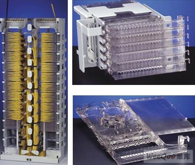 照片1显示了一个高密度机架及其组成部分,包括一个72端口的模块槽,可根据需要逐步增加模块,每个可插拔模块包含12个光纤端口。