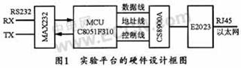 计算机网络实验平台的硬件框图如图1所示,它主要由C8051F310、CS8900A和MAX232以及外围电路组成。
