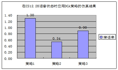 对三种DCA策略(策略1-不进行载波的调整,策略2-基于AOA的FODCA,策略3-基于导频的FODCA)进行仿真,可以看到,应用FODCA后掉话率有明显降低。