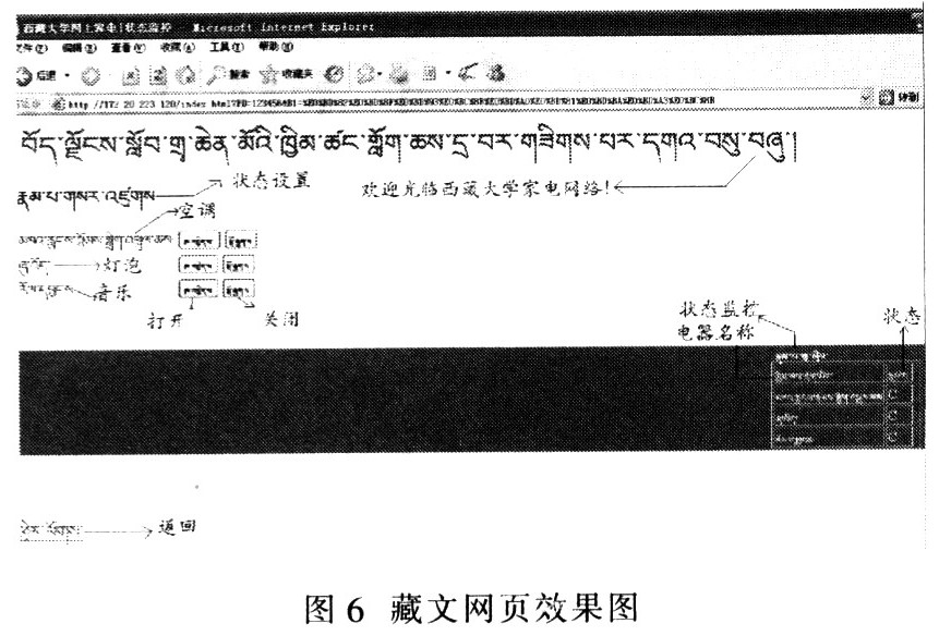 藏文网页的实现有两种方案:使用图片形式和标准藏文国际编码(UTF-8)。前者是所有的操作系统都可打开所做的藏文网页。但处理过程相对繁琐;后者采用国际藏文编码,网页制作简单,但所做的网页必须在装有藏文字库的系统上显示。本方案的网页需通过网页转换工具将相应的网页数据存储到单片机中。由于网页转换工具无法保存图片信息,故只能选择后者。