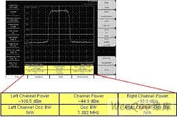 占用带宽测量99%信号功率所占带宽,典型值在1.3~1.6 MHz之间。超过1.6 MHz则意味着会对相邻频点造成干扰。
