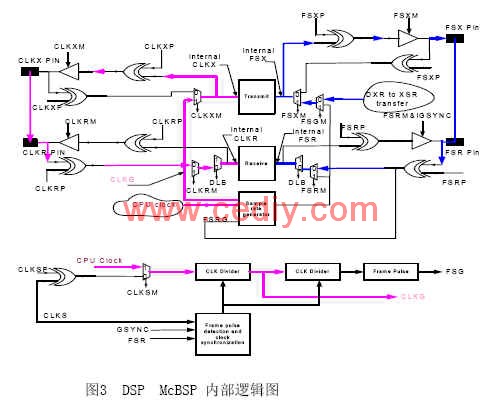 McBSP功能强大,结构复杂,要实现二者的通信,关键要对McBSP的各寄存器进行合理配置,包括主从方式选择,时钟信号、帧同步信号的产生,数据收发的沿边选择,时序配合等,下面分别加以论述。