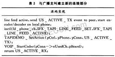 另外,本系统还实现了广播强插功能,即不管用户当前处于摘机、拨号状态,还是处于通话状态,当有广播来电时,都断开原来的连接而与广播主叫建立新的连接(用户不用挂机)。为了防止通话混乱,本系统设定同一时刻只有拥有广播控制权的用户有发言权,而其他用户能听不能说,当其他用户想发言时,只要按下“*”键就抢到了广播控制权,最后只有当拥有广播控制权的用户挂机时,广播才停止,而任一其他用户挂机,不影响广播通讯继续进行。