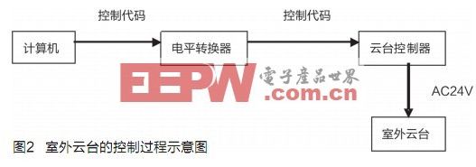 实际应用中,由于接收天线较轻、波束宽度较宽,因此,选用了云台作为伺服跟踪机构。云台解码器控制室外云台旋转,与计算机之间的通讯采用RS-485电平,支持长线传输,采用PELCO-D协议。图2为室外云台的控制过程示意图。