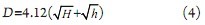 由于受地球曲率的影响,两个点(天线高度分别为Hm和hm)之间最大可视距离(视距)D(km)可按下式计算: