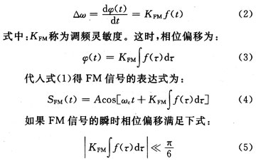 所谓频率调制(FM)指瞬时频率偏移△ω随调制信号f(t)成比例的变化,即: