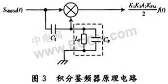另一种FM解调器就是所谓积分鉴频器,如图3所示。这类FM解调器已在很多单片FM收音机和接收机芯片中使用。