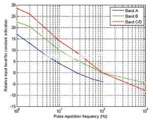 对于带有QP检波器的接收机上的常数指标,图3表明了CISPR 16-1-1标准描述的幅度和重复频率之间的关系。