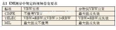 在大多数EMI测量中,视频滤波器指定为关闭,或视频滤波器指定为至少比测量的指定RBW高出三倍(参见表1)。
