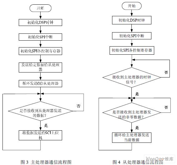 SPI 通信主处理器的流程图和从处理器的流程图分别如图3、图4 所示。