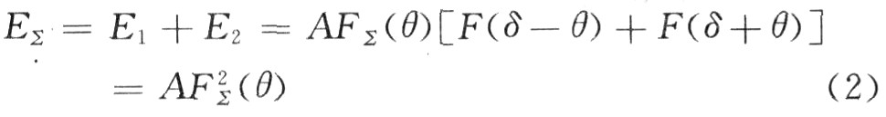 以方位平面为例,假定两个波束的方向性函数完全相同,设为F(θ),两波束收到的信号电压振幅分别为E1,E2,两波束各自相对天线轴线的偏角为δ,则对于偏离天线轴线θ角方向的目标,其和信号振幅为: