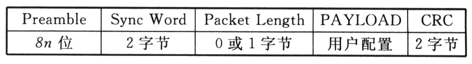 PAYLOAD(有效数据载荷)是用户所发送的数据。CRC(CRC校验和)由内置CRC校检。Si4432内部集成有调制/解调、编码/解码等功能,从而Preamble、Syncword、Packet Length和CRC都是硬件自动加上去的,用户只需设定数据包的组成结构和部分结构的具体内容(如前导码和同步字)。
