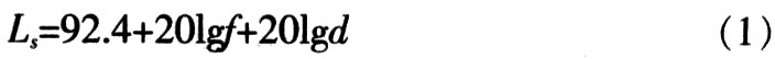在微波通信系统中,信号传输主要利用微波的视距传播。微波通信的频率大部分在2~20 GHz范围内,不同的地形条件,其反射系数及电平损耗不同。无线电波在自由空间传输时,其单位面积内的能量会因自由扩散而减少,所减小的能量称为自由空间传输损耗,用Ls表示,单位为分贝(dB),其计算公式为: