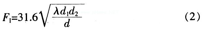 式中d1、d2以km为单位,R0=6 370 km,代入式(10),则有: