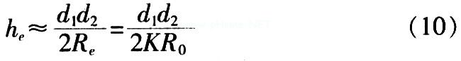 考虑电波折射,地球等效半径Re等效地球凸起高度为: