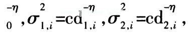 的瑞利分布,方差与两节点之间距离d0,d1,i,d2,i的关系为:σ20=cd