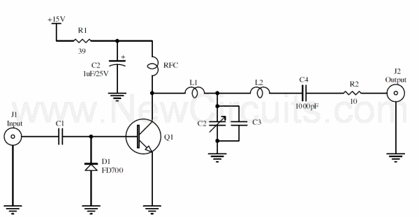 The RF circuit is a C-Class power amplifier . it is used in last stage of transmitters .Its maximum power output is about 1 Watt . the circuit can be used in 3 frequency range :