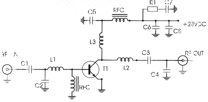 Variable capacitors C1, C2, with inductor L1, constitute the coordinated circuit that adapts the exit of our transmitter in this amplifier RF. the circuit has been calculated suitably, so that it covers all band the FM with the biggest possible output. Inductor RFC1 polarize the transistor, so as to it works in order C that is to say with the biggest output. Inductor L2 in the collector of TR1, constitutes the charge of amplifier, while RFC2 prevents the RF signals escape in the line of catering. Capacitor C2 and resistance R1, protect the circuit from auto polarize.