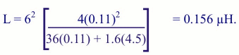 Using the above values, the inductance of L1 can be calculated. A diameter of 5.5mm = 0.22 inches, the radius is half this value or 0.11 inch, the length is 4.5mm and number of turns, n = 6. This gives L1 a value of: