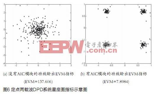 其次,通过量化指标EVM进行比较[3],图6给出了信干比为-10dB时的EVM指标,可以看出,AIC算法可有效抵消干扰,改善星座图。