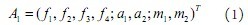 其中A1表示中等频谱利用率接收机结构性能向量,f1、f2、f3、f4分别代表各滤波器的性能函数,a1、a2代表各放大器的性能函数,m1、m2代表各混频器的性能函数。