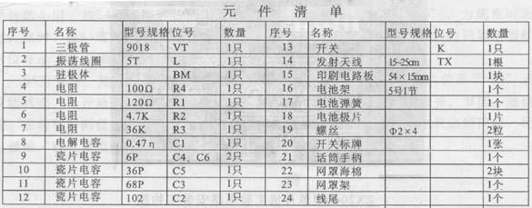 三极管vt除可以使用9018外,还可以选用截止频率高的高频三极管,如3dg80等。c2、c3、c4和c5应使用稳定性好的高频瓷介电容,尤其是c5一定要保证质量。驻极体话筒采用优质的话筒。振荡线圈l需自制,制作方法是在直径为φ5毫米的直柄钻花上用φ0.5毫米的漆包线平绕4圈后即成。其它电阻采用图l所示的参数即可。