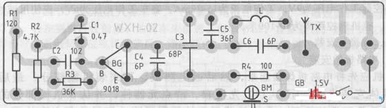 wxh02型无线话筒的印刷电路图见图2。