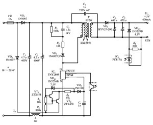 在设计工业控制的辅助电源时,可采用美国PI公推出的TinySwitch-Ⅲ系列第三代微型开关电源。目前,世界通用的交流输入电压范围是u=85~265V。但是当18V<u<75V时,芯片就无法提供足够的偏压以维持正常工作,这就大大限制了TinySwitch-Ⅲ系列产品在低压领域的应用。为解决上述难题,使TinySwitch-Ⅲ在超低交流输入电压下也能正常工作,就需要从外部设计一个悬浮式高压恒流源。