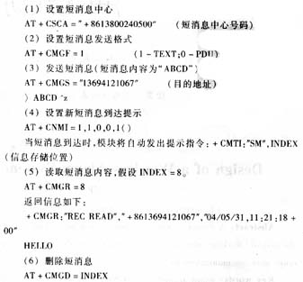 对于短消息模式,TC35T实现对SMS的控制共有两种接入协议:基于AT命令的
