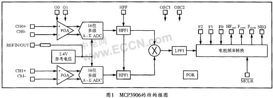 1.1 MCP3906的内部结构及工作原理