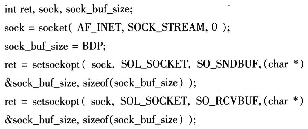 在Linux 2.6内核中.发送缓冲区的大小由调用用户定义,而接收缓冲区会自动加倍。通过计算合理设置缓冲区的大小,Socket网络传输带宽的资源将得到充分利用,从而提高了传输性能。