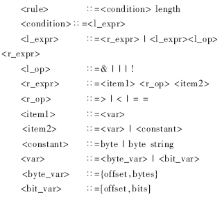 数据包过滤的主要目的是缩减数据。为了防止丢包,包过滤只做简单的基于包头内容的过滤(如IP地址、TCP/IP端口、TCP标志位等),去除不关心的网络数据包的数据而只留下其报头,并将其结果存入指定数据库。经过包过滤之后的网络包数据量将大大减少。包过滤规则的BNF范式描述如下: