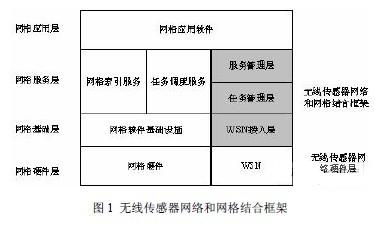 结合框架需要在不改变整体结构的前提下将无线传感器网络动态加入到网格中。它要能够同时连接多个无线传感器网络,并可以容易地和网格的计算、存储资源进行集成,这样才可以使用户透明地使用多个无线传感器网络。