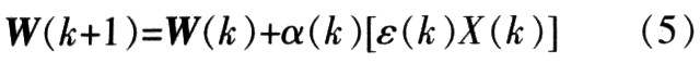为了解决式(3)存在的问题,有学者提出LMS学习问题的严格递推算法和随机逼近算法,这里简要描述其算法原理。LMS学习问题的严格递推算法是在任意设置初始加权矢量W(0)时,对于每一个时序变量k,对W调整: