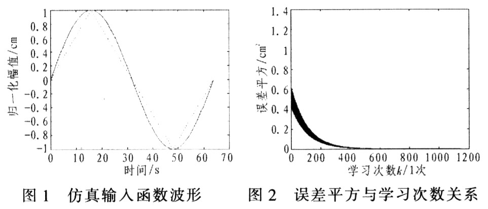学习是收敛的。但本仿真中均采用恒定步幅值α,这样只有在α的值比较小的情况下,才能保证学习收敛。为了改进算法,可采用时变的步幅α(k)=1/pk+q,则既满足步幅因子收敛的条件,又保证步幅因子在学习开始时较大,而随着学习的进行逐渐减小。