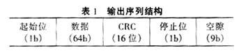 表1中的CRC码生成的多项式为x16+x12+x5+1,它符合CCITT/ISO3309-1984标准。CRC码由64位数据计算生成,并可用移位寄存器实现。该寄存器在每个停止位时复零。