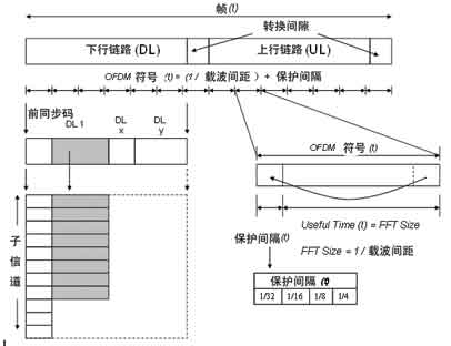在基于正交频分多路复用的并行符号传输方式下,时间增量通常是指OFDM符号周期(图3的横轴),每个时间增量包含成千上万个符号。例如,WiMAX(802.16e)在每个OFDM符号周期内能够传输128~2048个符号。图3的纵轴标识为子信道(subchannel)。这些子信道并非真正的物理信道,而是每个OFDM符号周期内传输的成组的并行符号。通过这类符号图就可以定义802.16e信号是如何构成的以及它的时间行为如何。