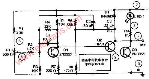 该交流发电机调节器采用以个3晶体管的dc放大器,它是为“是拉”(pulled up)励磁系统设计的,在这种系统中,叫变励磁线圈的以端返回到+12V电源,而另以端接地。电路通过以个电阻性分配器调节电池的状态,并改变励磁终端的电压,