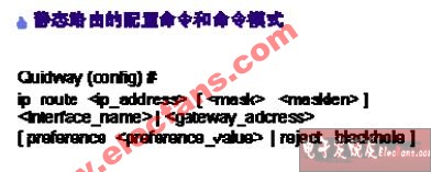 用户可以在全局配置模式下通过命令 ip route 来配置一条静态路由。命令的